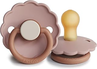 FRIGG Daisy Latex Pacifier | Classic Soother 1 Pack | Symmetrical Cherry Shaped Nipple | BPA Free | Made in Denmark | Latex Dummy Pacifier | (Biscuit, Size 1 (0-6 Months))