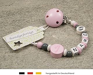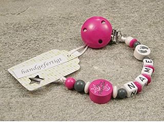 Eine Schnullerkette mit Namen ist der perfekte Begleiter für Babys, die ohne ihren Beruhigungssauger nicht einschlafen können. Bei uns erhältst Du Schnullerketten in zahlreichen Ausführungen und Farben. Zur Verbindung der Kette mit dem Schnuller stehen zwei Varianten zur Verfügung. Eine Schnullerkette mit Namen ist dabei ein ganz besonderes Highlight, denn auf den Motiv- oder Holzperlen lassen sich ganz einfach die einzelnen Buchstaben anbringen, die dann zum Namen des Babys führen. Bis zu acht Buchstaben sind möglich und dabei wird auch auf die Einhaltung der strengen Richtlinien der DIN EN für Babyartikel geachtet. Das Produkt ist komplett schadstofffrei und in vielen unterschiedlichen Farben erhältlich. Eine solche