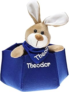 Osterkörbchen blau Filz mit Hase personalisiert Geschenk zu Ostern mit Namen Set aus Kuscheltier und Osternest Ostergeschenk