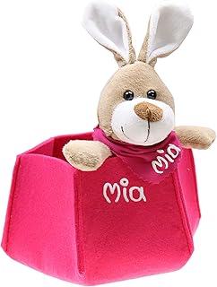 Osterkörbchen pink Filz mit Hase personalisiert Geschenk zu Ostern mit Namen Set aus Kuscheltier und Osternest Ostergeschenk