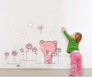 ufengke® Niedlichen Rosa Bären Lieben Herz Wandsticker, Kinderzimmer Babyzimmer Entfernbare Wandtattoos Wandbilder