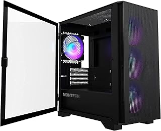 Montech Air X ARGB preisgekröntes Mid-Tower-Gaming-Gehäuse mit gehärtetem Glas an der Seite, Perfekter Staubschutz 3 eingebaute ARGB-Lüfter, kompaktes Gehäuse, tolles ATX-PC-Gehäuse Schwarz
