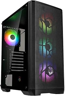 BitFenix Nova Mesh SE TG PC-Gehäuse, Gaming PC-Tower, 4 Installierte ARGB-Lüfter, ARGB-Controller, Mesh-Front, Gehärtetes Glas, Exzellentes Kabelmanagement, schwarz