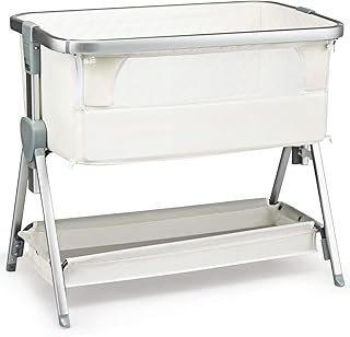 COSTWAY 2 in 1 höhenverstellbares Beistellbett & Babybett mit Aufbewahrungskorb, Kinderbett klappbar, Reisebett rollbar, Stubenbett inkl. herausnehmbarer Matratze, Befestigungsgurt (Weiß)